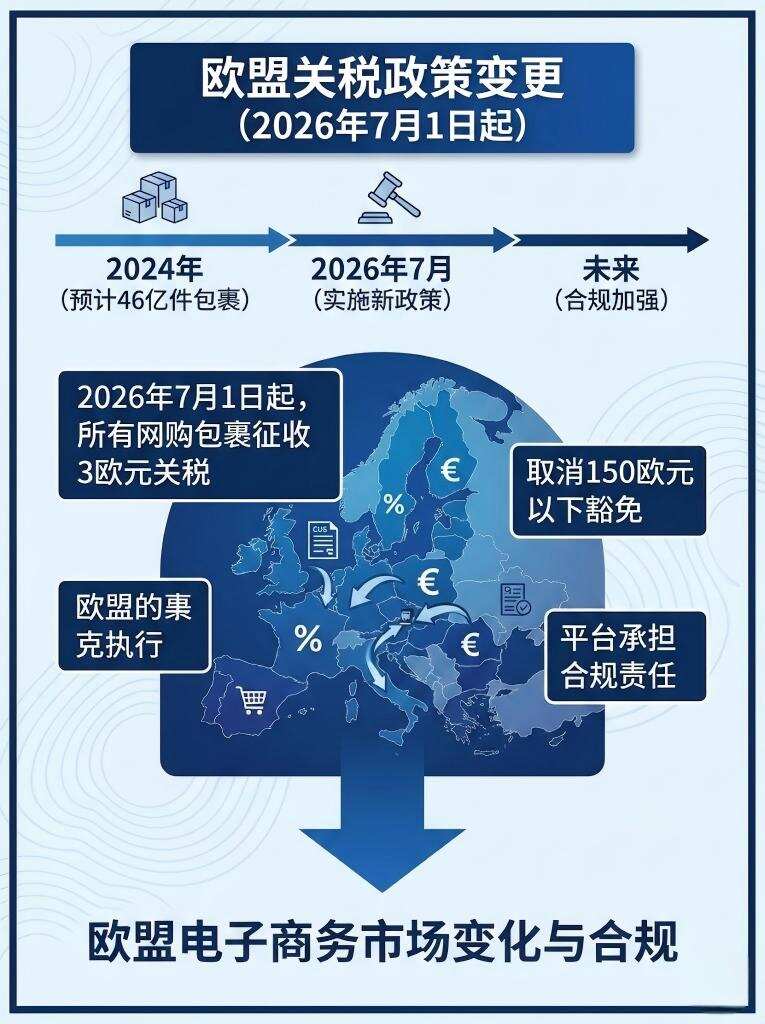 欧盟2026年7月起对所有网购包裹征收3欧元关税