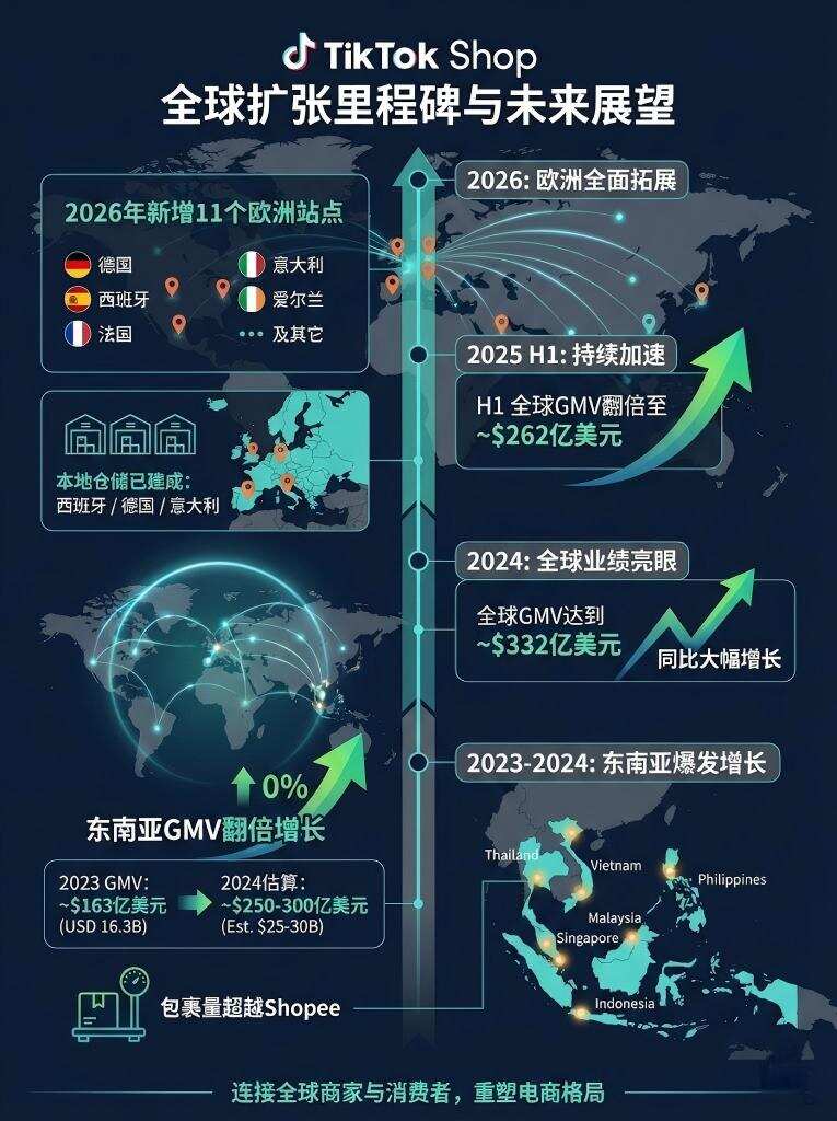TikTok Shop东南亚GMV翻倍,计划2026年新增11个欧洲站点