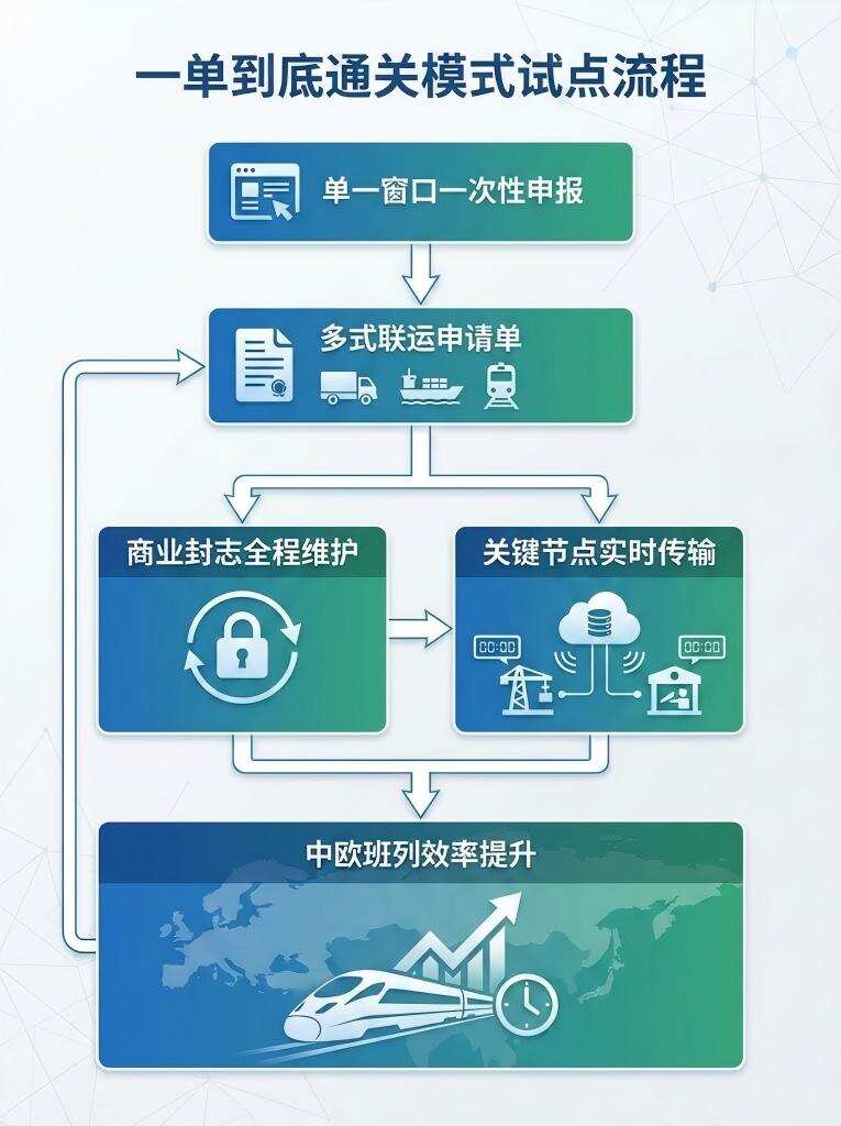 中国海关总署试点"一单到底"通关新模式。自2026年1月27日起,符合集装箱运输条件的进出口货物可通过"一单到底"模式实现全程通关,企业只需通过国际贸易"单一窗口"一次性提交多式联运申请单和电子数据,替代传统的转关重复申报流程。此次试点涵盖了境内铁路或水路与跨境水路运输的组合方式,预计将大幅提升中欧班列和内陆港口等多式联运效率。