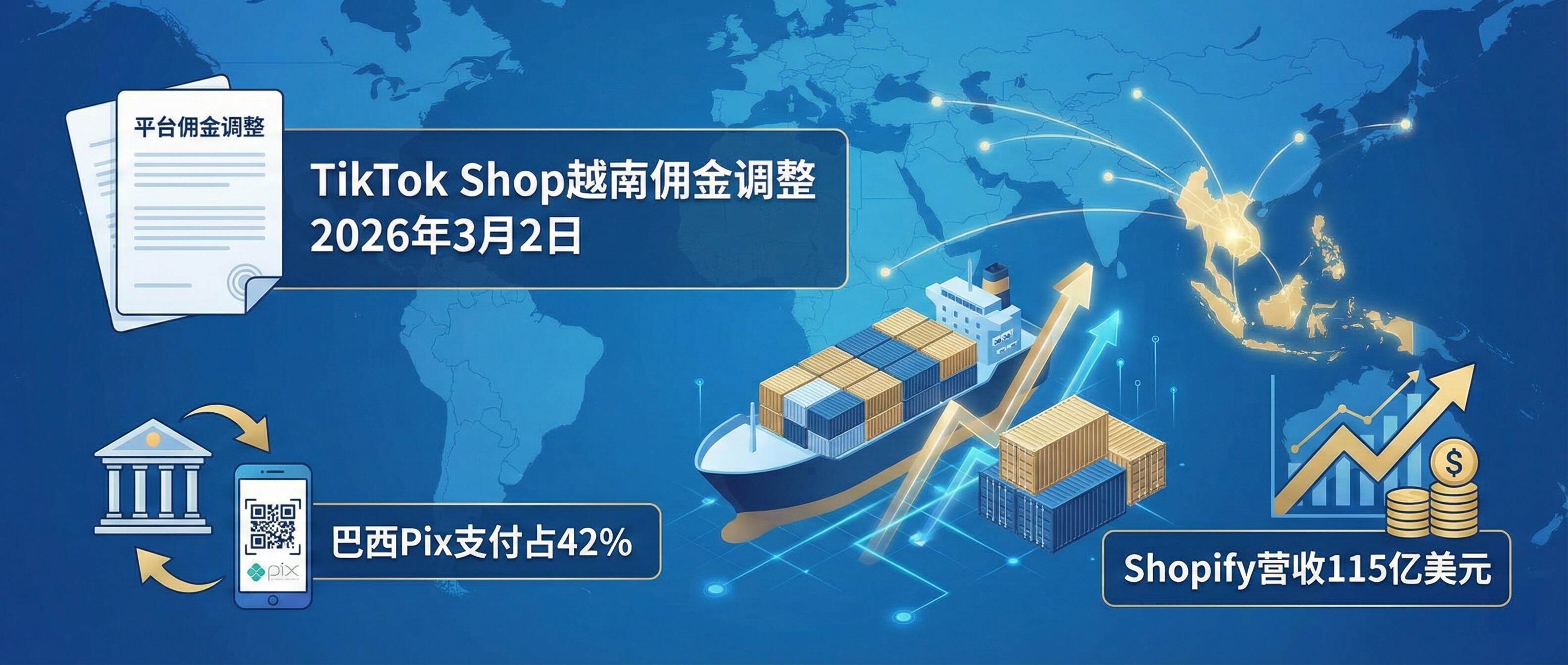 近期,跨境电商平台政策密集调整,从佣金费率到支付功能均有新动向。TikTok Shop越南站宣布佣金调整,亚马逊英国推出银行直付功能,Shopify财报显示强劲增长,同时各国监管趋严,合规要求持续升级。